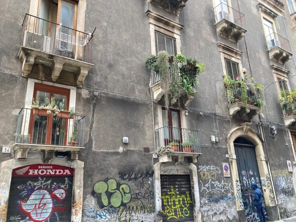 אז חשבתי שאפשר להוריד את הרגל מהגז ולטייל יותר לאט, לנסות להנות יותר מהטיול. לעצור, להסתכל, להקשיב לאנשים, ולנסות לראות איך החיים שלהם באמת נראים. אז זה מה שאני מנסה לעשות כשאני מטיילת. קטאניה זו לא עיר מאוד גדולה ולכן הרבה ממה שעשינו היה פשוט לטייל ברחובות של העיר הזאת. אחד הדברים המיוחדים בקטאניה זה בעצם הארכיטקטורה. הבניינים שיש שם נבנו בסגנון הבארוק, זאת אומרת שאלה בניינים ישנים ויפים. אז הסתובבנו והסתכלנו על הבניינים, על הארכיטקטורה. לצערי, בהרבה מאוד מקומות כל החלק התחתון של הבניין, זאת אומרת, הקומה הראשונה, ממש מכוסה בגרפיטי. ואני לא מתכוונת לגרפיטי יפה או מיוחד, אני מתכוונת לגרפיטי פשוט, כזה שטינאייג'רים עושים, ואת זה אפשר לראות על הרבה בניינים וזה קצת חבל, כי הרבה בניינים הם מאוד יפים אבל כל החלק התחתון של הבניין ממש מלא בגרפיטי. אני אצרף תמונה של משהו כזה לטרנסקריפט כדי שתוכלו לראות ולהבין על מה אני מדברת. בעצם אני לא יודעת למה זה ככה ואם אתם חושבים שאתם יודעים את התשובה ללמה יש כל-כך הרבה גרפיטי על בניינים בקטאניה אתם מוזמנים לשלוח לי מייל עם התשובה.